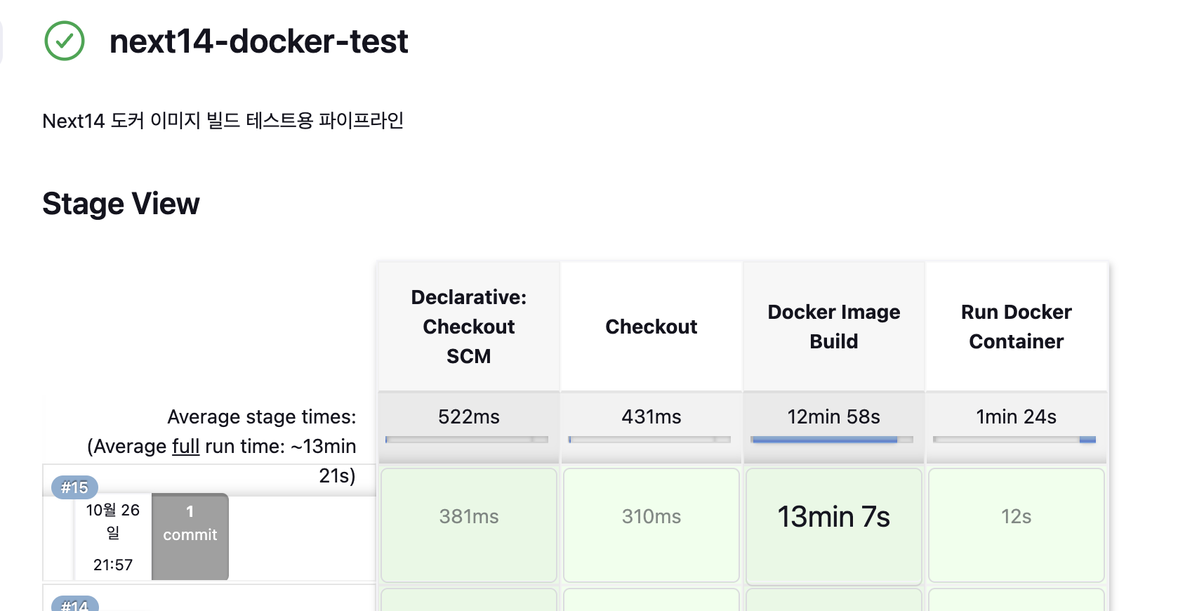현재까지 작성된 jenkinsfile은 이미지 빌드를 수행하는 단계까지만이다. 원래라면 Docker hub에 이미지를 푸시하고 pull 받아서 사용하는 구조를 고려하였으나, 이미 같은 서버를 사용중인데 굳이 Hub에 올리는 단계를 거쳐야 하는가에 대해 고민을 했었고, 결과적으로 우선은 바로 이미지를 컨테이너로 실행시키는 구조를 가지도록 변경을 진행하였다.